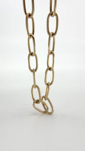 Meet our By Brockton hand made oval chain in 14k yellow gold. Each link is handmade with recycled gold by our jeweller in a small studio, not a factory. The chain is 17 inches long with a handmade Sheppards hook clasp. Wire is 1.5 mm thick. This chain will be custom made to order and can be customized in your length of choice.