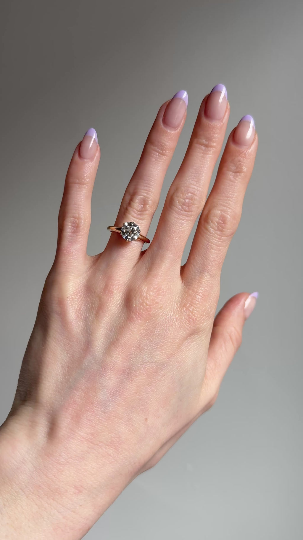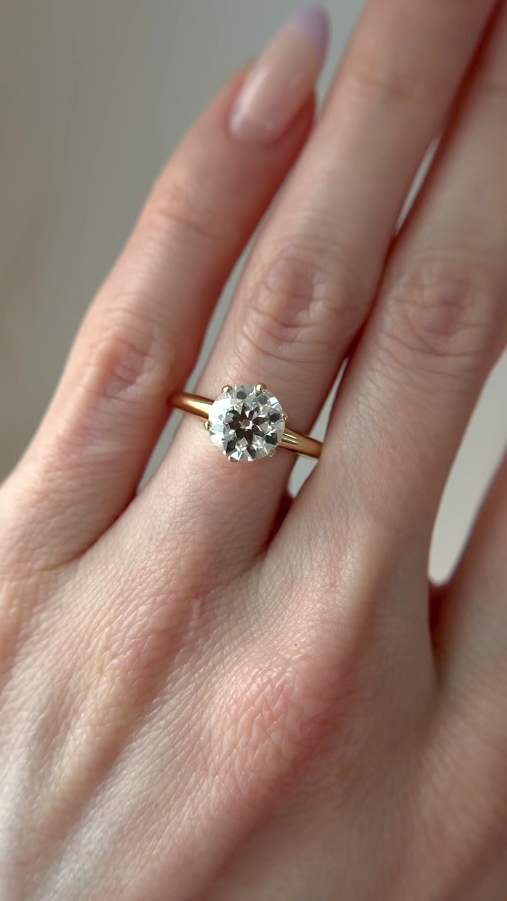 Meet our By Brockton Signature Victoria setting. Set in 14k yellow gold and inspired by a classic six claw Victorian engagement ring and set with a modern old European cut lab diamond custom cut for Brockton Gems by hand in Toronto. This ring was made in a small Toronto workshop (not a factory). This ring is also available for custom order in different metal and size of diamond.