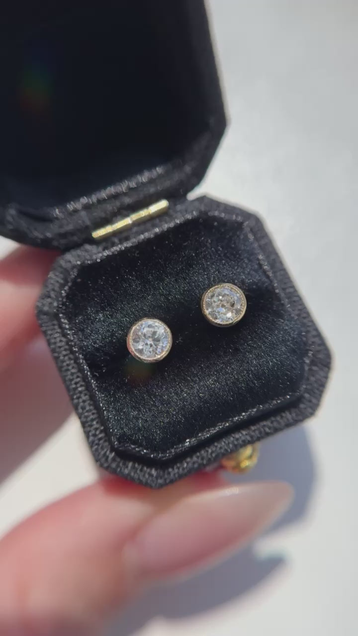 Our classic Brockton Signature bezel set diamond stud earrings. The minimalist bezel settings are paired with sparkly repurposed antique diamonds. We love how these classic stud earrings are so wearable and mix old with new. The earrings are fitted with screw back posts for a secure fit. A true modern classic. Handmade in a small Toronto workshop (not a factory).