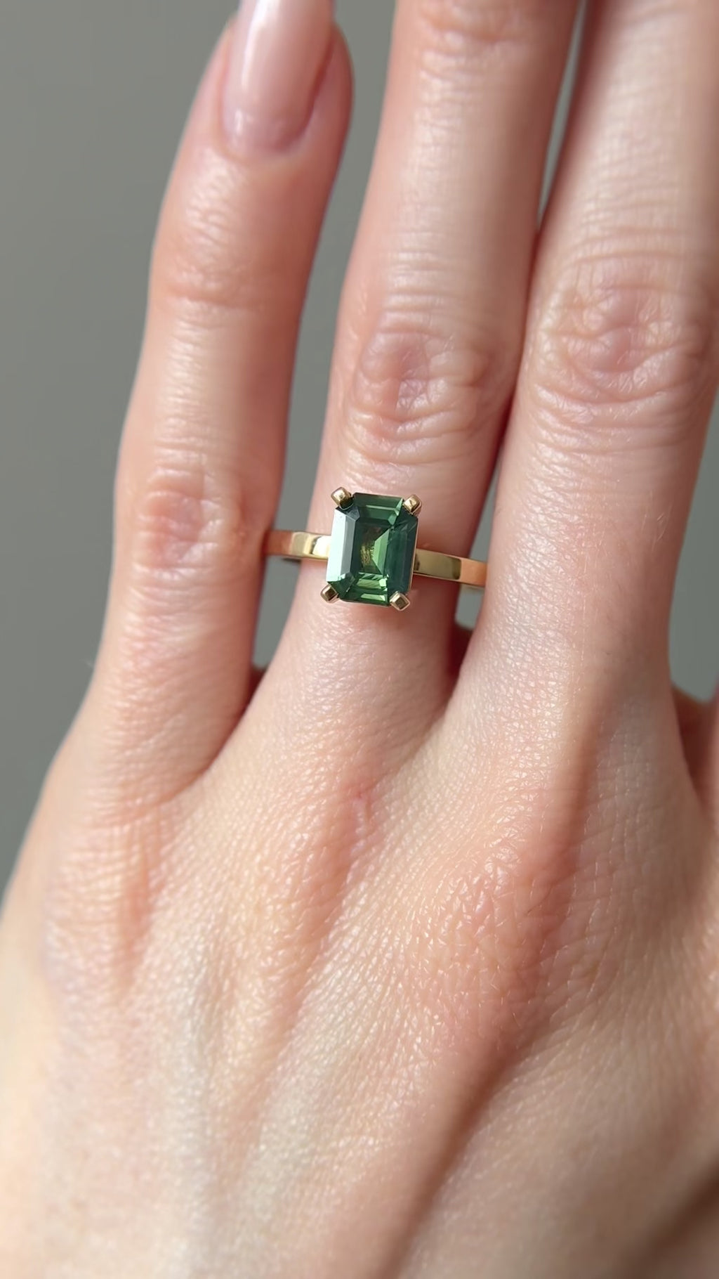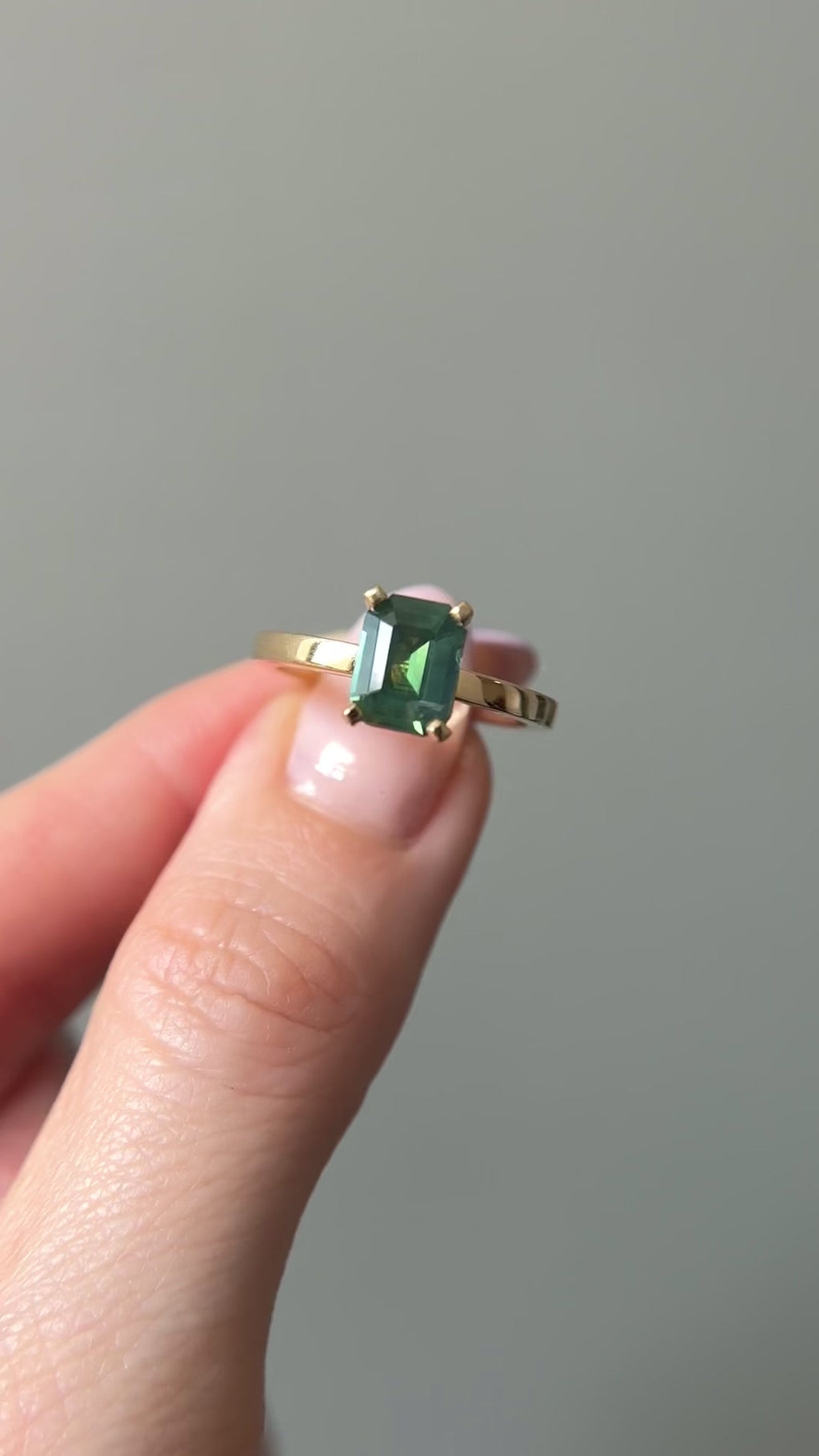 SOLD Emerald Cut Green Sapphire Engagement Ring, 1.61 Carats