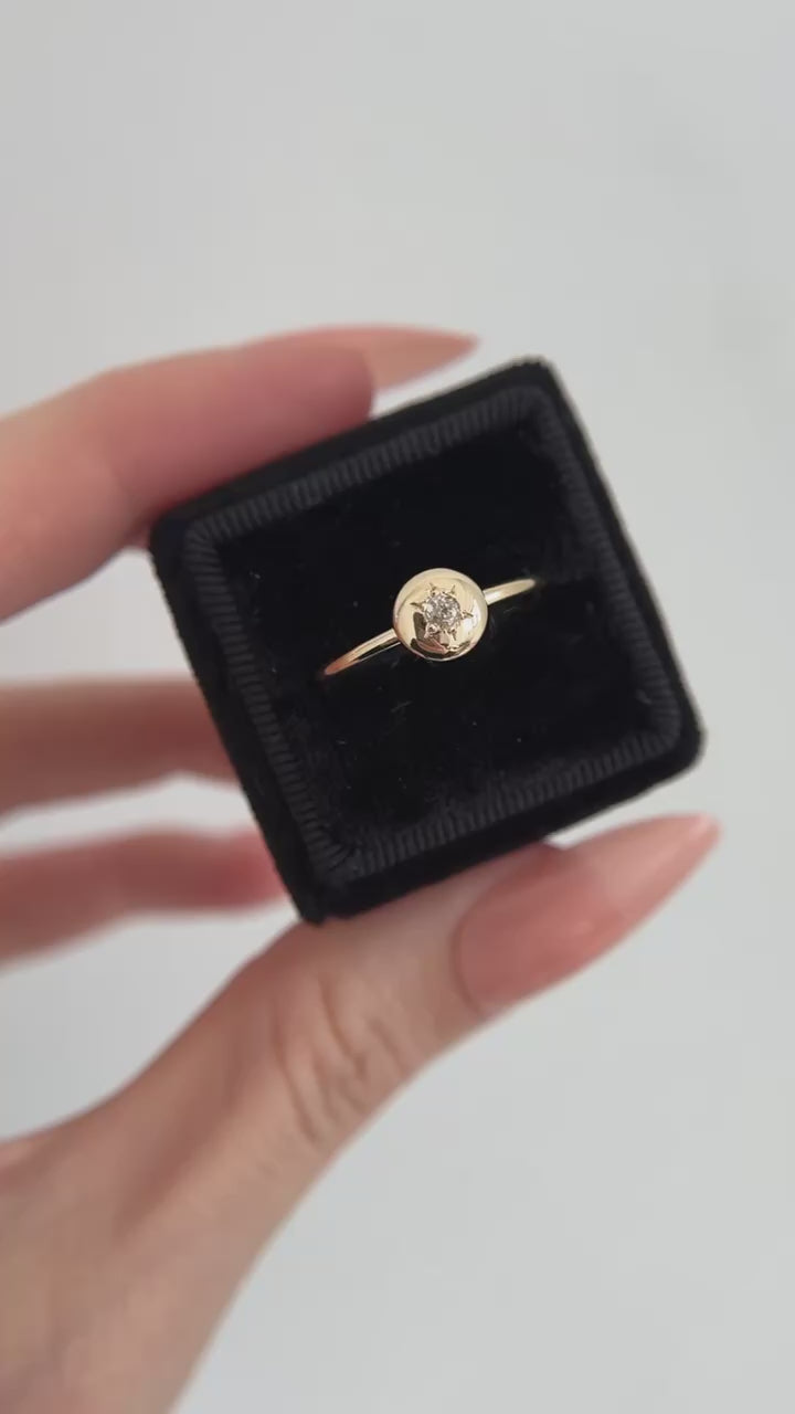 This ring is custom made to order. Everyone has a person in their life that's their "Soft Spot". Someone who they can always turn to for comfort. This ring was inspired by my "soft spot" in life and features a repurposed antique diamond star set in a soft pillow of gold. Gift it to your soft spot or wear it as a reminder. Custom made in a small Toronto workshop (not a factory).
