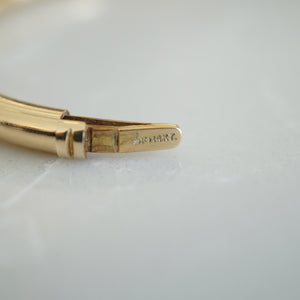 Perfect classic vintage hollow oval hinged bangle bracelet in 14k yellow gold with hidden pressure clasp.